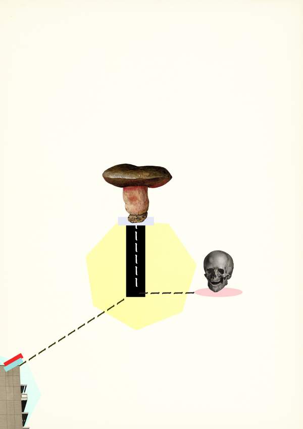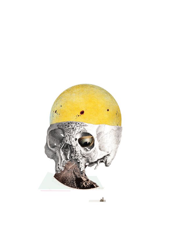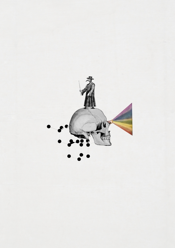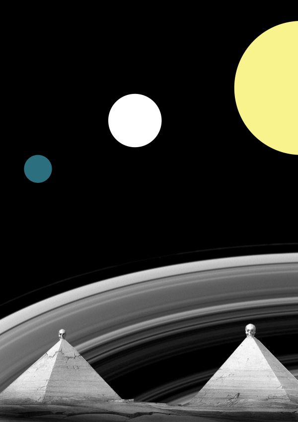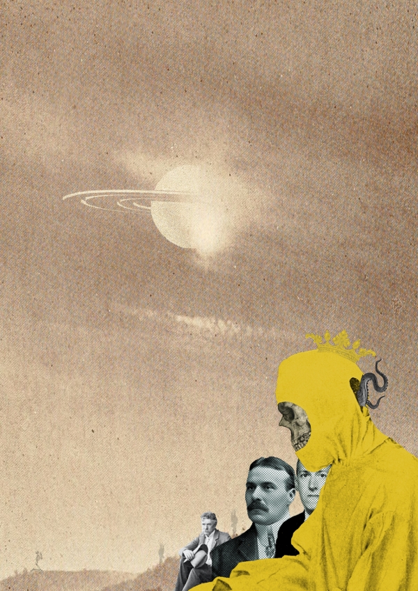 Collage, in der Querbezüge zwischen Robert W. Chambers Horror-Anthologie "The King in Yellow" mit den Werken von Ambrose Bierce und H. P. Lovecraft illustriert werden.